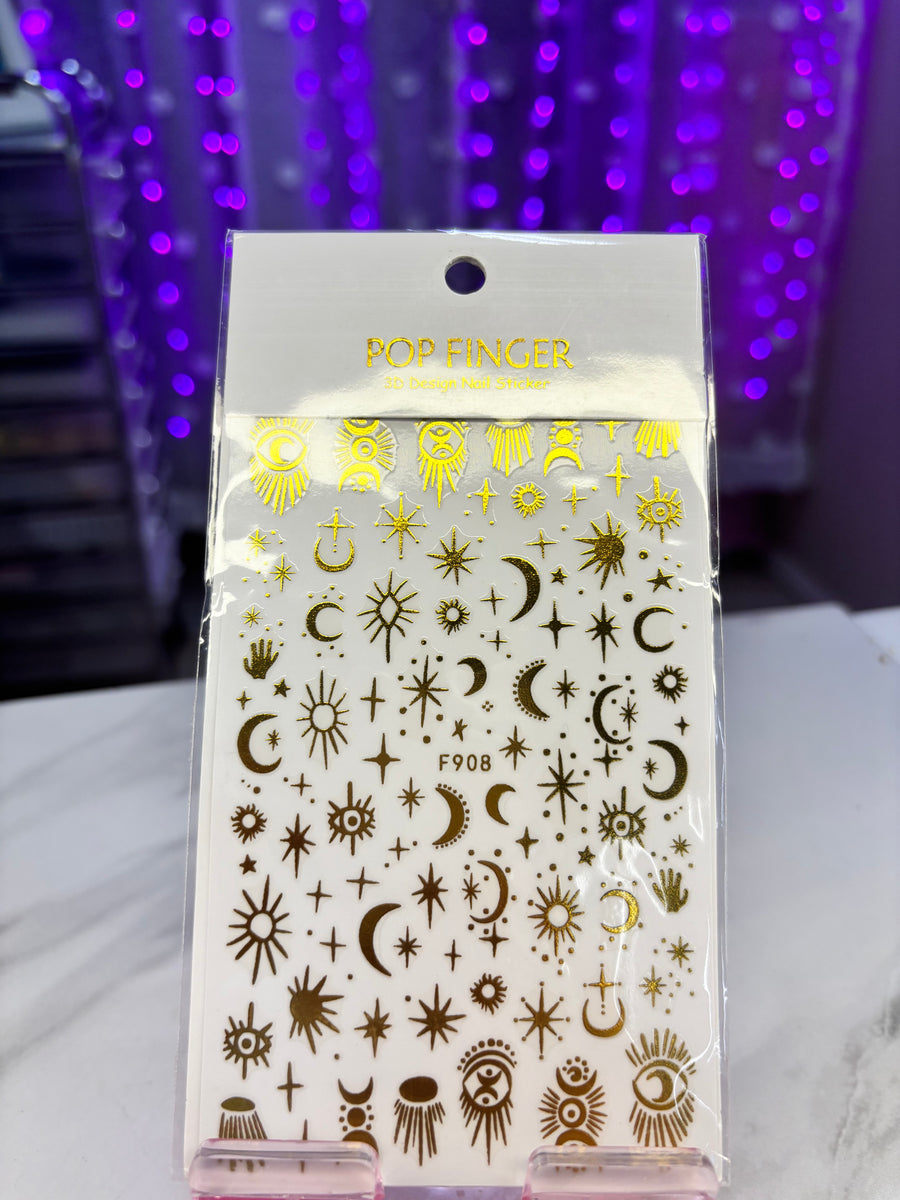 GOLD STAR AND MOON NAIL STICKER